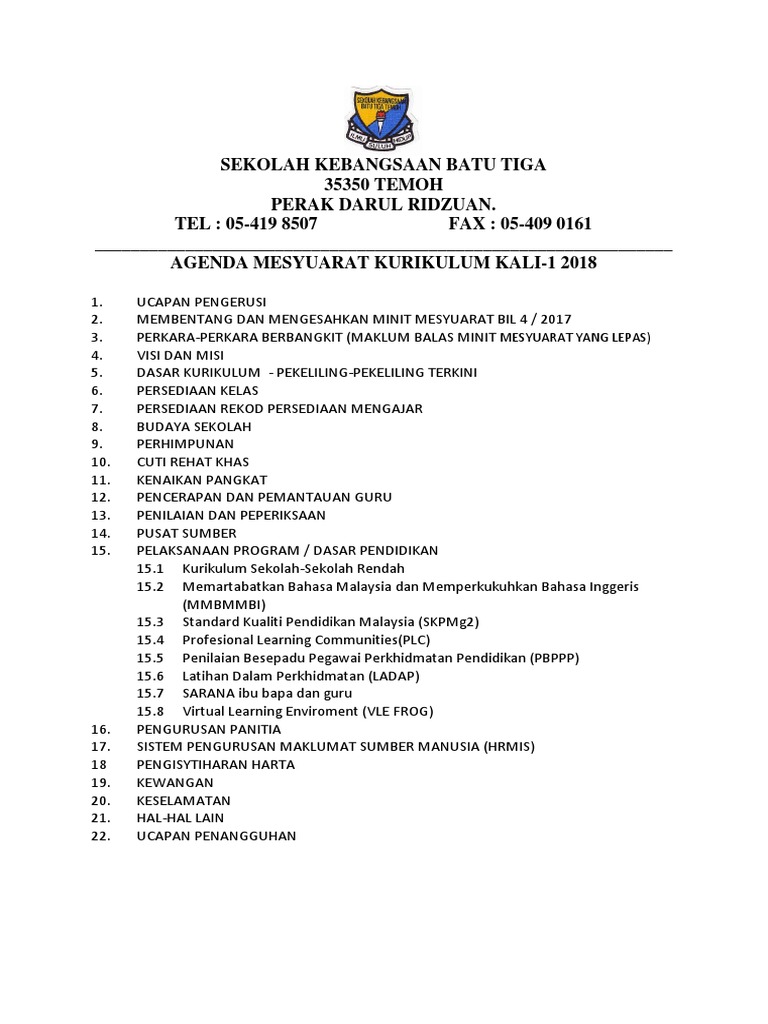 Arzahari bin Johari Guru Kanan Mata Pelajaran Teknik dan Vokasional 2. Contoh surat jemputan mesyuarat ahli jawatankuasa pergerakan pengakap rujukan tuan. Bilik mesyuarat al-insyirah kehadiran 1.